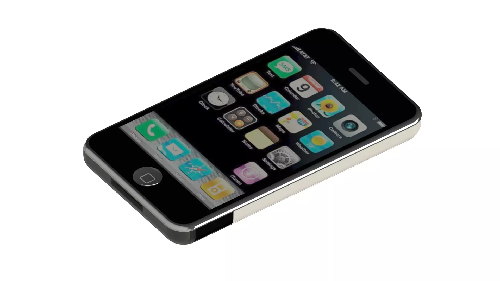 Attention to detail shines throughout the model, capturing the nuanced features that defined the iPhone 2G's design. The accurately modeled physical buttons, speaker grille, and camera lens convey a sense of authenticity, while the smooth curvature of the device's edges evokes the tactile experience of holding the original iPhone. The simulated screen showcases the revolutionary touch interface that transformed mobile technology.