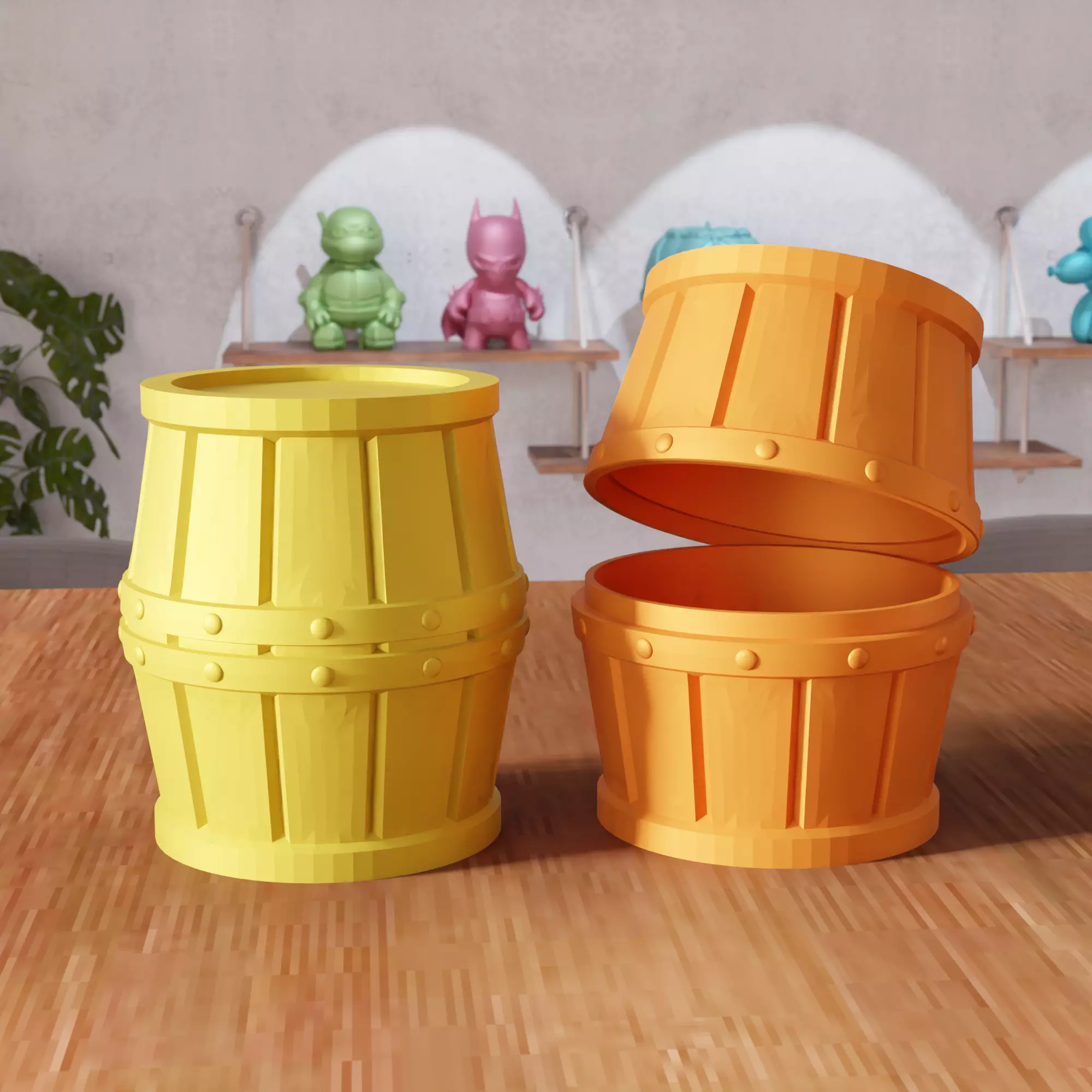 This 3D Barrel Container STL model delivers a beautifully stylized rustic storage solution, perfect for desktops, shelves, game rooms, craft spaces, and themed décor. Designed with reinforced paneling and riveted band details, the barrel includes a fully removable lid, allowing it to function as a storage box, organizer, candy bowl, prop container, or tabletop accessory.