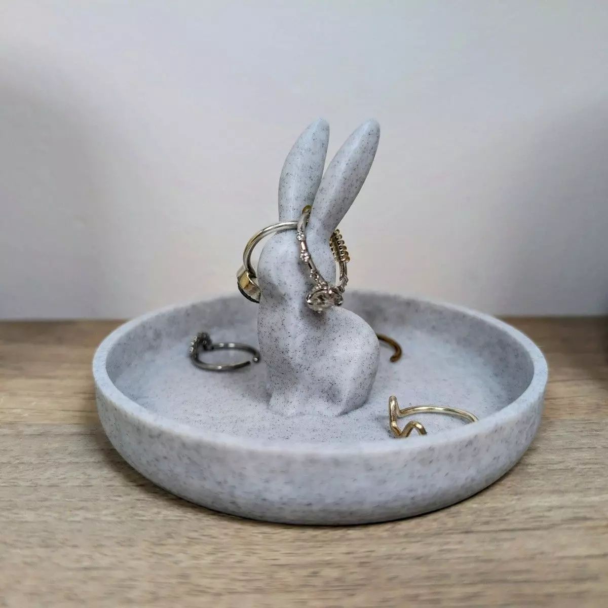 With its soft speckled finish and minimalist form, this piece fits seamlessly into modern, Scandinavian, or neutral interiors. Ideal for bedside tables, bathroom vanities, or dressers, it offers a stylish solution for keeping rings safe and easy to find.