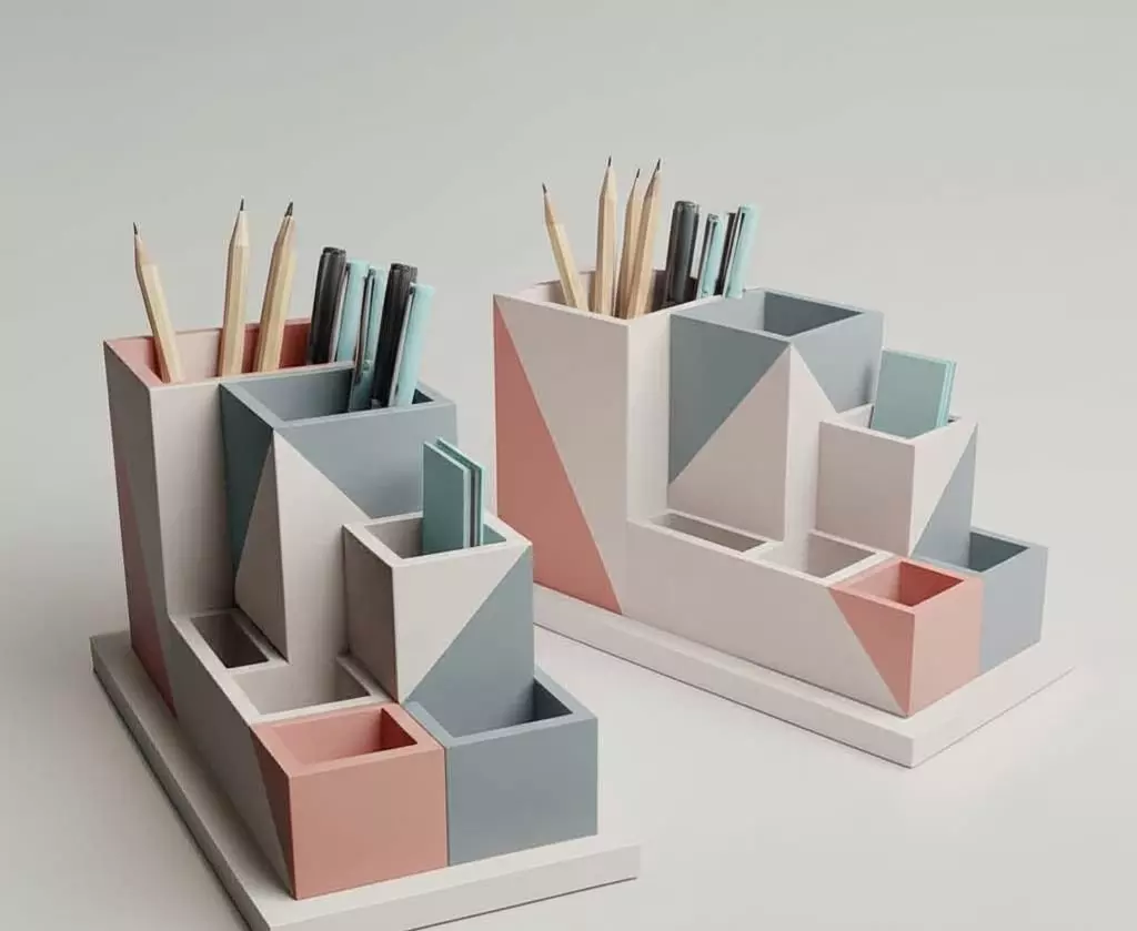 The clean geometric shapes and flat surfaces make this model easy to print and ideal for home offices, studios, and workspaces.The modular design allows flexible arrangement and stylish desk organization. FeaturesModular geometric desk organizer