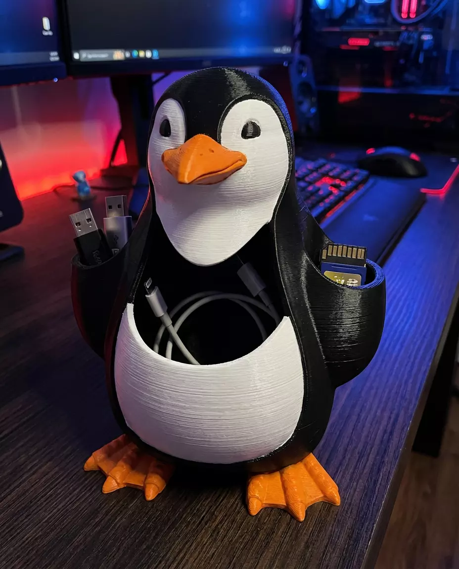 Organize your tech with the coolest bird in town! This Penguin organizer features slots for SD cards, USB drives, and a central space for charging cables. Functional, adorable, and the perfect companion for your workstation.