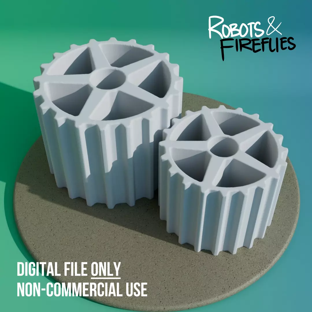Cog-shaped desk pen/pencil organizers. A fun way to add a little steampunk or industrial aesthetic to your office, study room, living room, etc.
