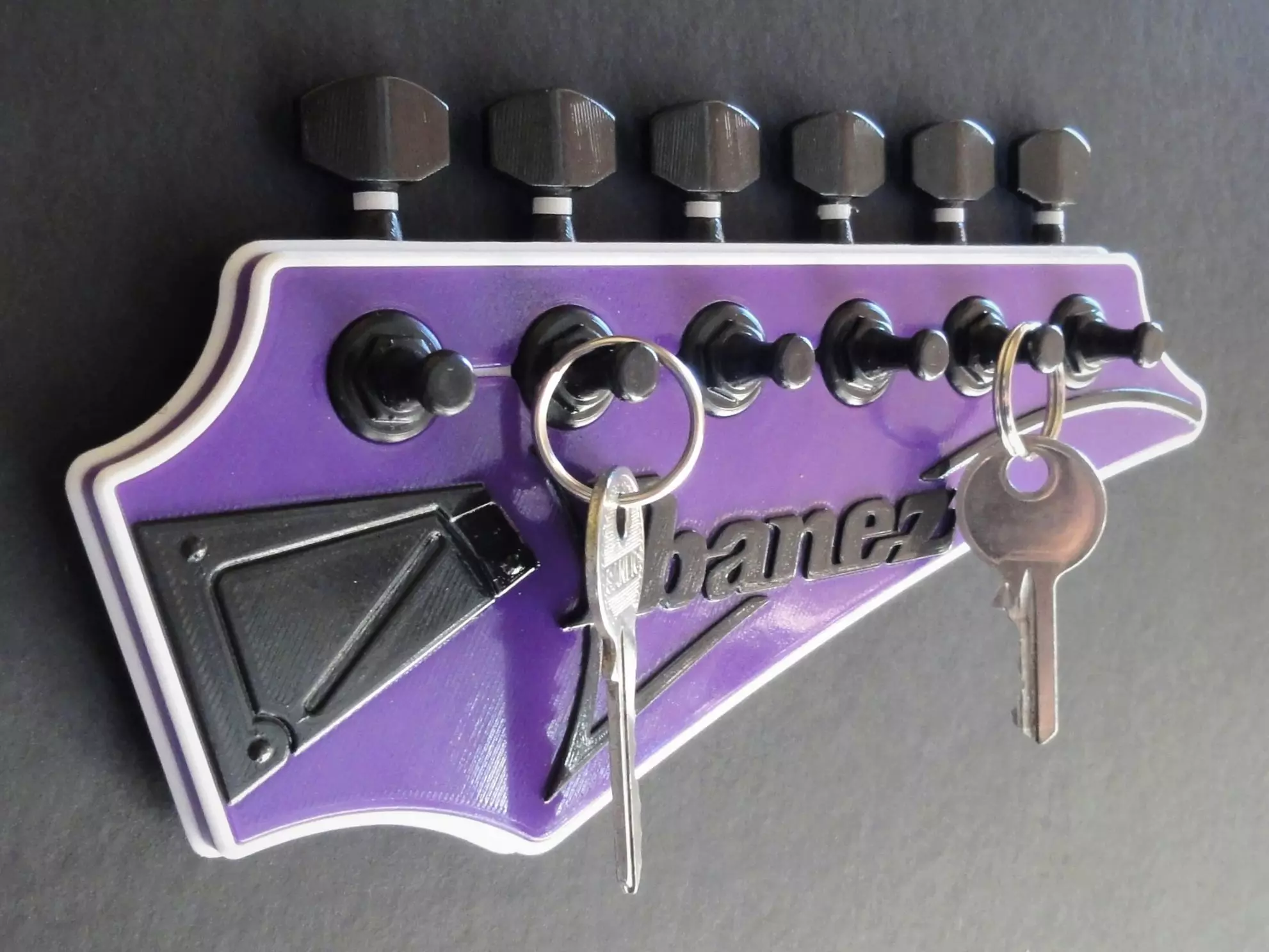 Never lose your keys again with this easy to use, stylish Ibanez Headstock Key Holder. Simply attach to a wall or surface with only two 3.5mm screws. This product makes for the perfect gift or home accessory for any guitar or musically minded fan. Bring the Ibanez flair home and hang your keys like a true Rockstar!