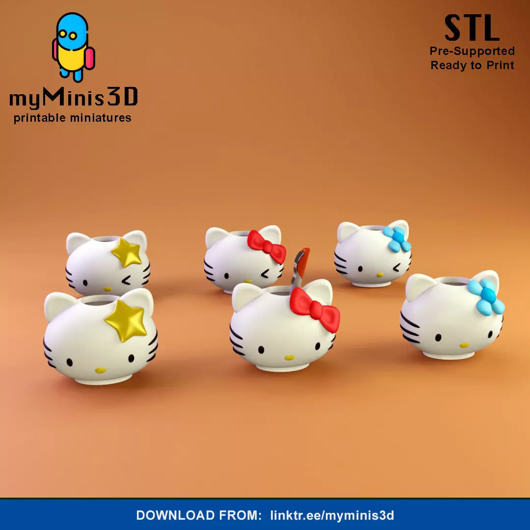 - 6 STL files of Hello Kitty Holders. (as seen in the Image).