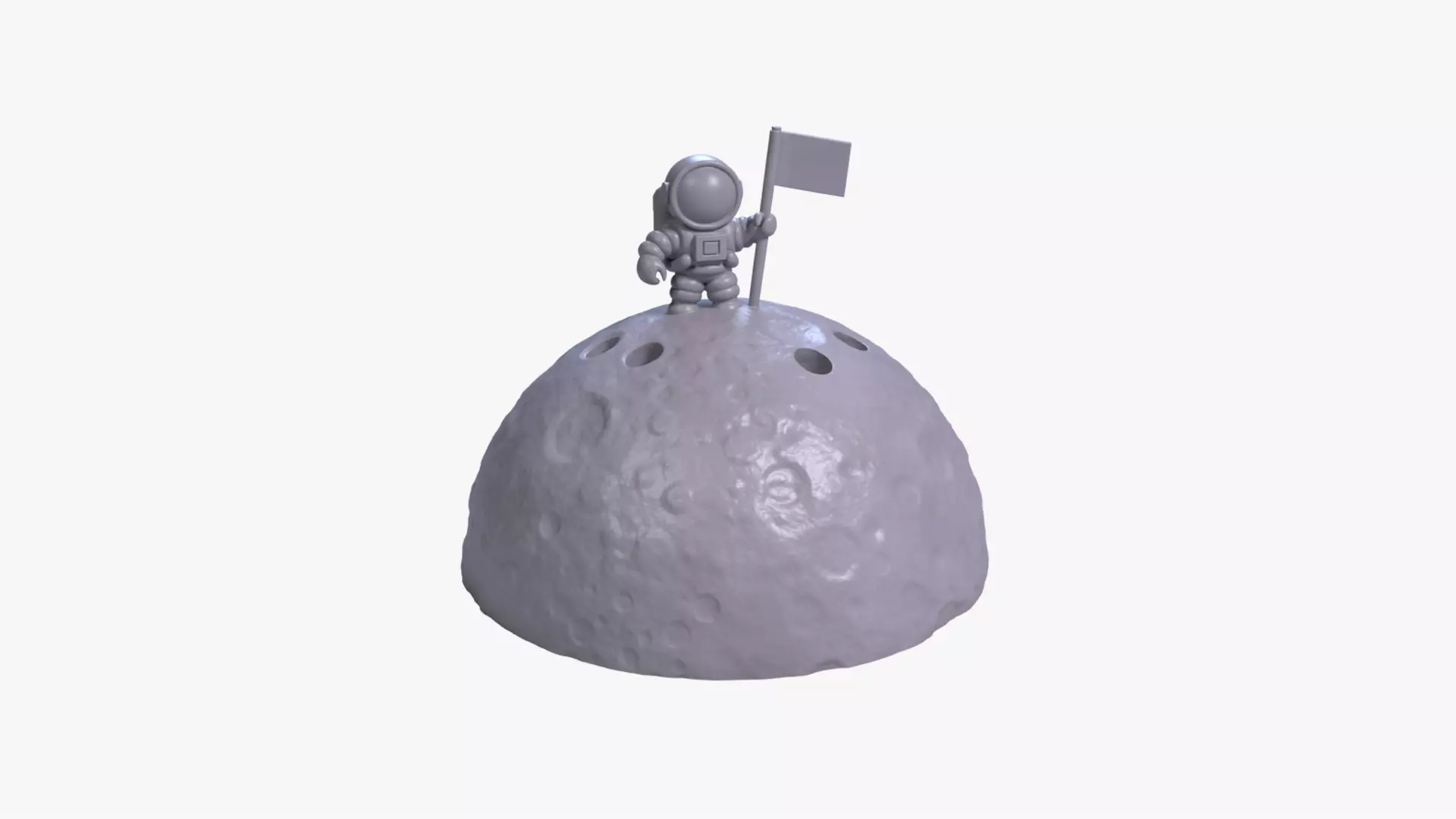 A playful space-themed organizer: a chibi astronaut plants a flag atop a lunar dome where the craters themselves act as fully integrated pen wells—no separate cups. Varying crater diameters sort different tools, while the broad dome base provides excellent stability. Smooth inner walls, filleted rims, and gentle draft angles make it friendly for both FDM and resin printing.