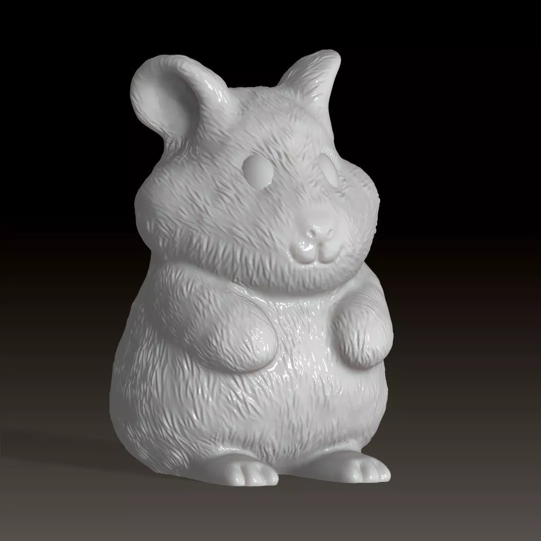 This adorable 3D printable hamster model is designed to bring charm and whimsy to any space. The model features a seated hamster with a soft, fluffy fur texture, round ears, and a cheerful, chubby expression. Its simple, minimalist details, such as the smooth eyes and compact paws, make it easy to print and perfect for beginners and experts alike. The stable base ensures a hassle-free printing experience, making it an ideal decorative piece, toy, or gift for hamster lovers. This model is ready to be printed and can be scaled to fit your needs.