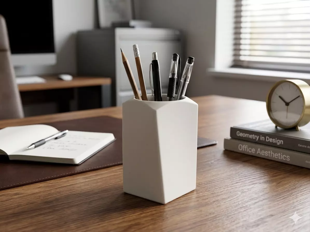 Elevate your workspace with this Minimalist Twisted Geometric Pen Holder.