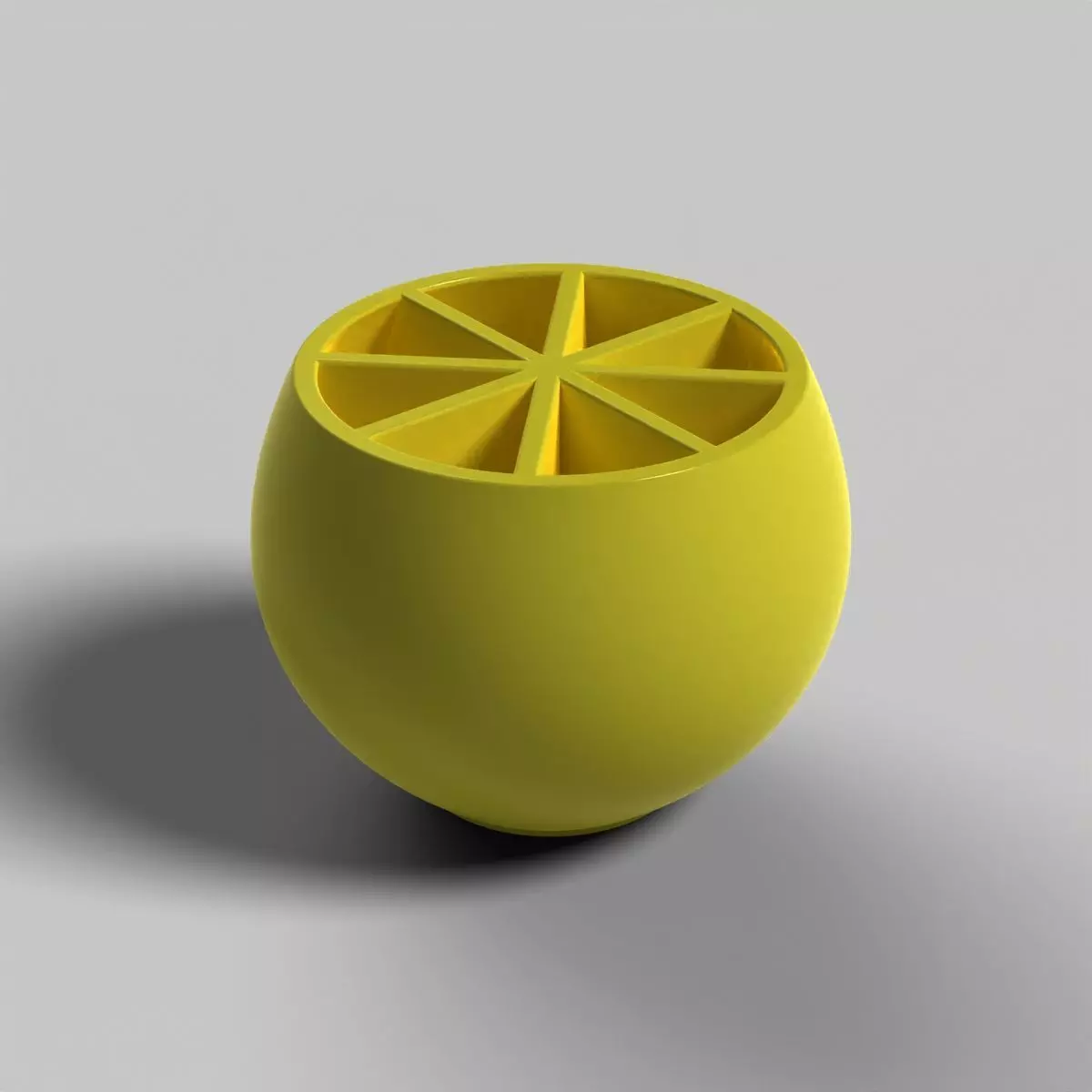 This pen holder features a sleek, spherical design with segmented sections inside for organizing various writing tools. Inspired by citrus fruit slices, it combines functionality with modern aesthetics.