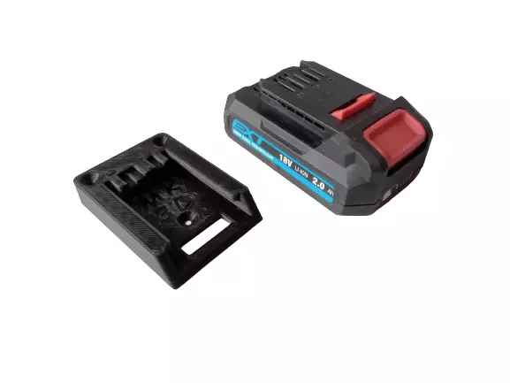 *The adapter is made in such a way as to prevent the battery from falling out automatically, until the lock is released.*It can be used as a wall mount for a battery, which is perfect for keeping your workshop tidy.*The adapter is made in 3D printing technology from PET-G in black.*Mounting holes with a diameter of 3.5mm (for standard screws)