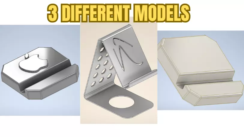 Hello everyone, I've designed three different phone holder models for you.The first is a product specifically for iPhone users, the second is a simpler design, and the third was designed by our sheet metal bending department and is suitable for production using sheet metal bending. So, you can create it for your company or for a 3D printer.