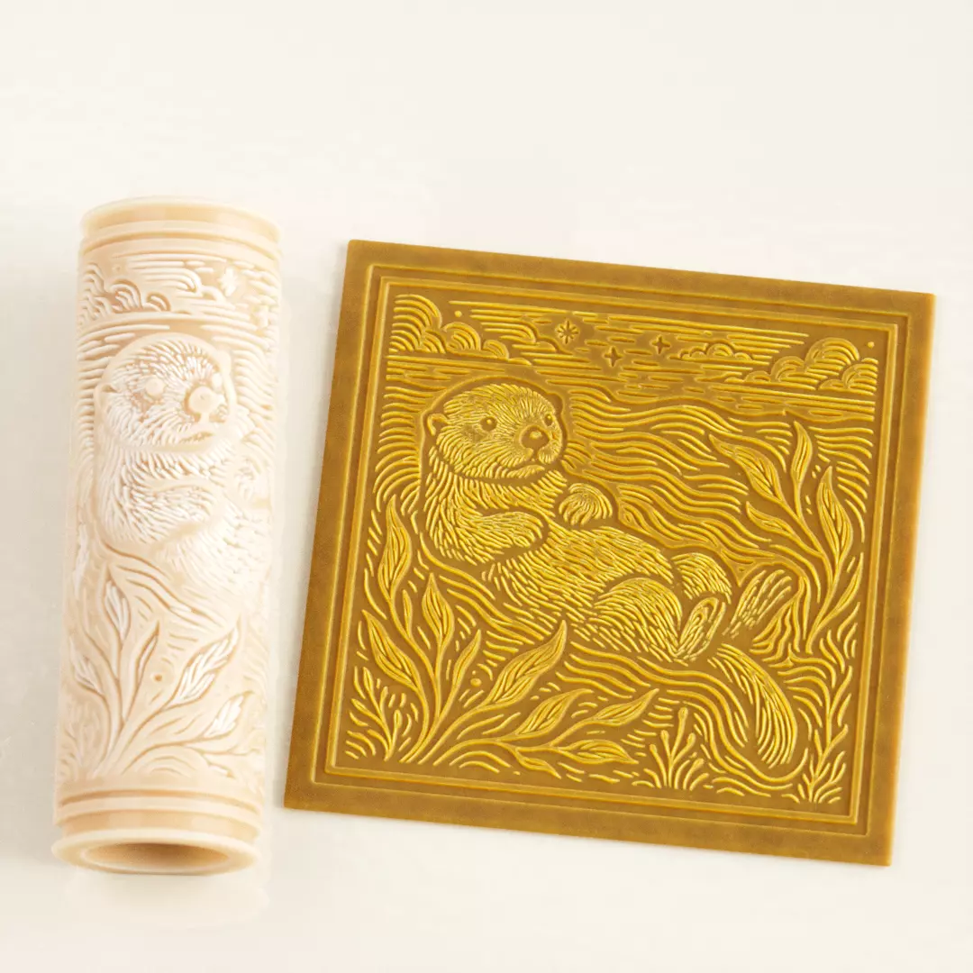 This otter texture roller STL is designed for creating detailed animal bas-relief surfaces for diorama terrain, miniature bases, and decorative clay work.