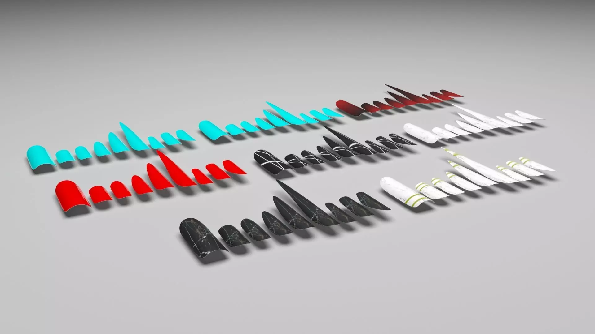 Renders for preview are made in 3ds Max 2022, V-ray 6;If you want to apply unwrap uvw in 3ds file, you need to convert editable mesh object to editable poly and load nails_set_uvw.uvw in Unwrap UVW modifier;Studio environment is not included;_ Have any questions? Let us know._