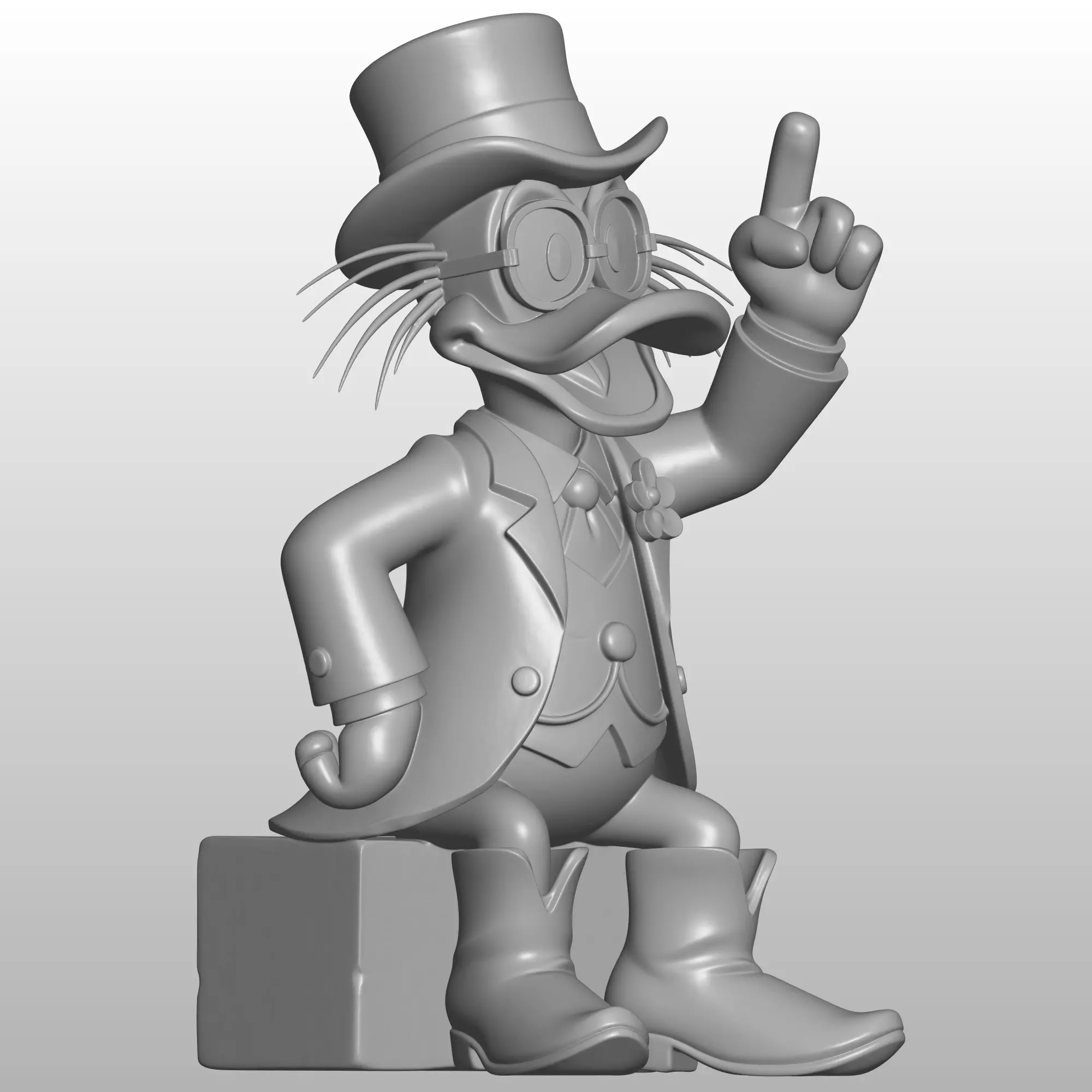 This STL file features Rockerduck in his iconic outfit: the top hat, spectacles, tuxedo, and those distinctive whiskers. He is depicted in a commanding seated pose, making it an excellent piece for display on a shelf or office desk.