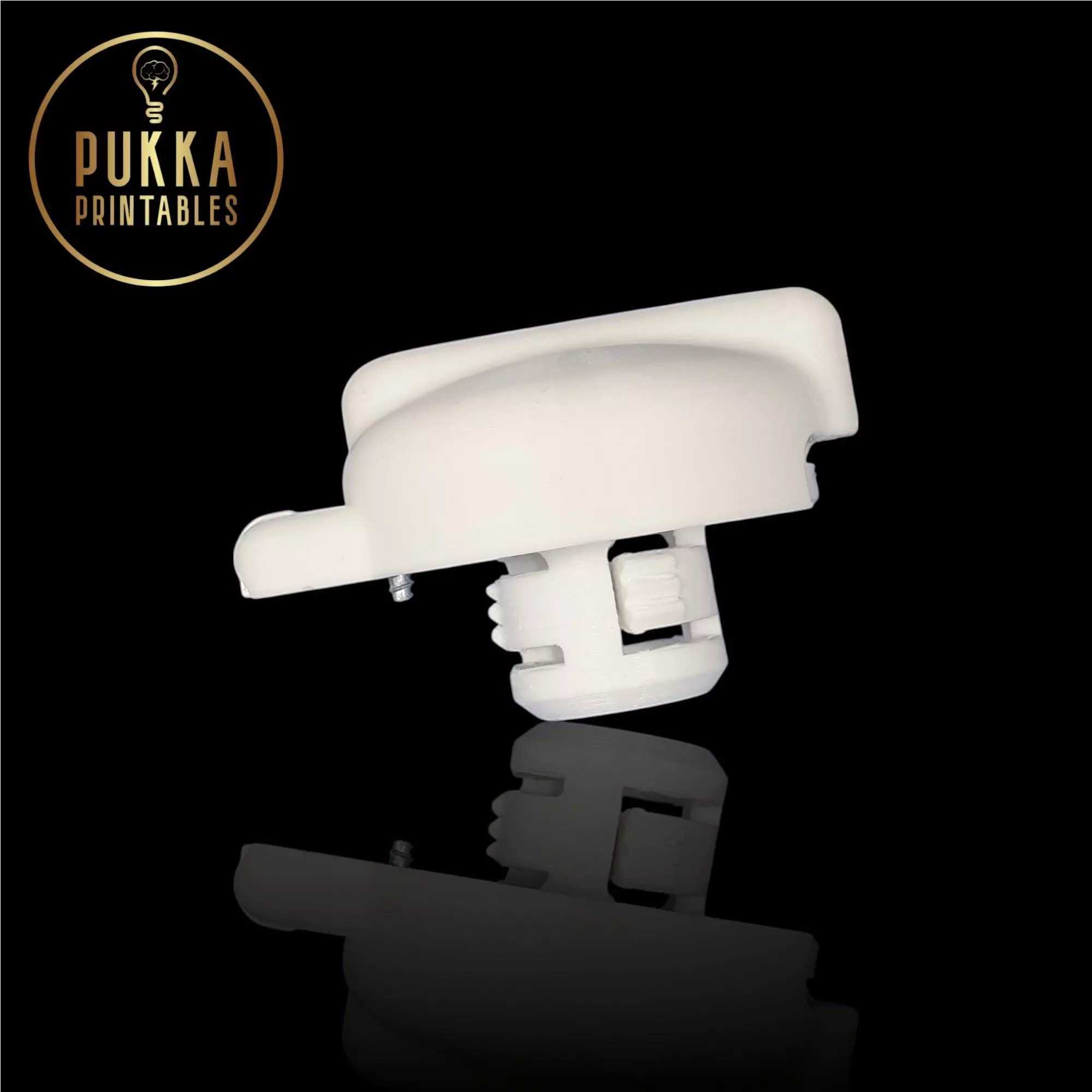 • The hinge piece should be secured to the inner cap using a single fastener (approx. 4.8 mm diameter x 9.5 mm length blunt screw); glue may be used if preferred but a screw is recommended for durability• Orient inner cap part with minimal support in slicing software• Outer cap has integrated support structures that detach post-print