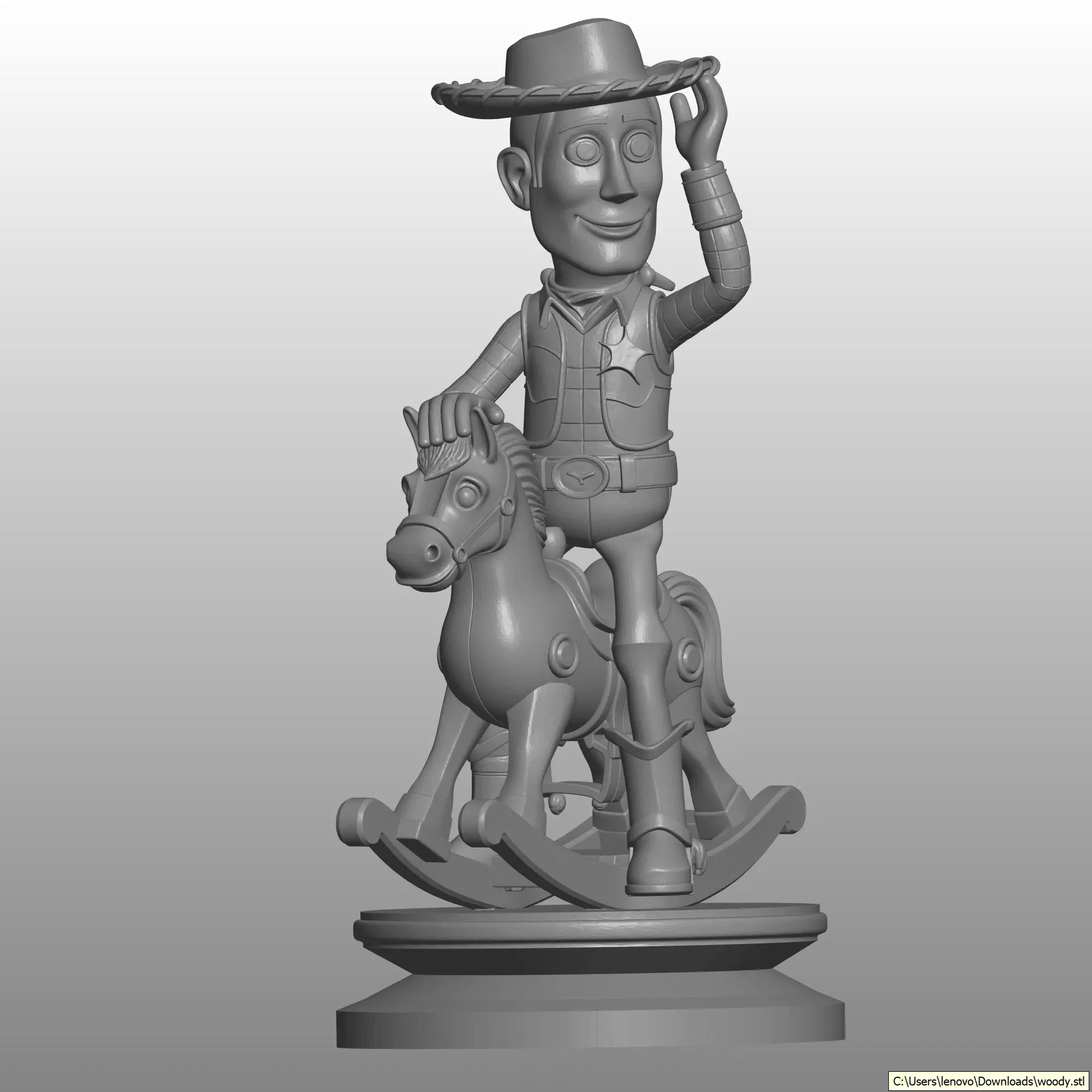 This is a highly detailed Blender Design of Sheriff Woody from Toy Story, featuring him in a playful pose on a rocking horse. This model captures the nostalgic charm of everyone's favorite cowboy, making it a perfect project for fans of the franchise.