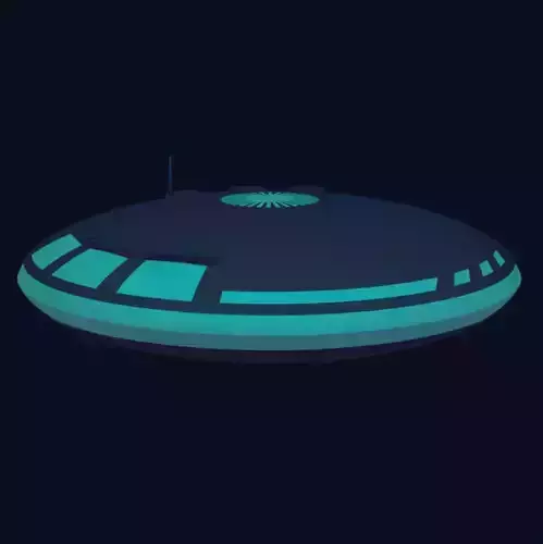 An otherworldly UFO vessel descended from the cosmos, casting an otherworldly glow across the landscape. The extraterrestrial craft, resplendent in its ethereal radiance, appeared as a testament to the advanced technology of its enigmatic creators. Bathed in neon colors, it was a symphony of vibrant, iridescent hues that danced across its sleek, metallic surface, creating an almost hypnotic display.