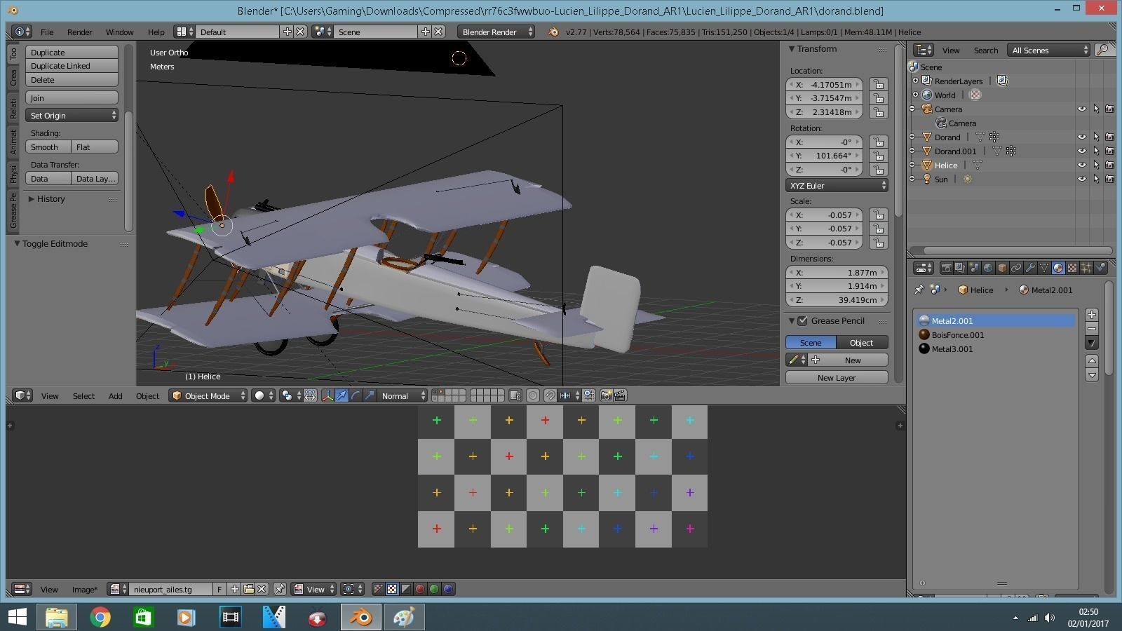 The model has material settings that define how surfaces look (color, shine, transparency, etc.).