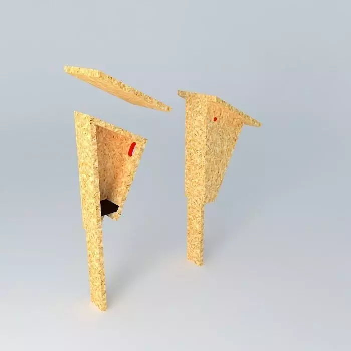 The data presented by W. H. Davis in the Journal of Field Ornithology in 1966 suggests that Eastern Bluebirds prefer this style over the traditional rectangular box. Bluebirds seem to prefer the oval entrance and slightly smaller floor area of the Peterson house. This design is more difficult to build because of the angled cuts required. It is also more costly because of the increased material involved. Personal preference also plays a part in nest box choice and the Peterson house is often chosen for its appearance. * * * Use Smart Siding to make these units. Be sure NOT to include a perch. Secure them to posts: a. about 100' apart b. about 6' off the ground Hole size, placement, & orientation are all important. (Please RATE this model. Thanks)