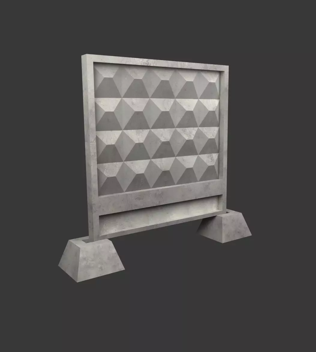 Features:-This model is an accurate representation of industrial concrete fence.-Created with Blender v2.80. -Can be used in games .