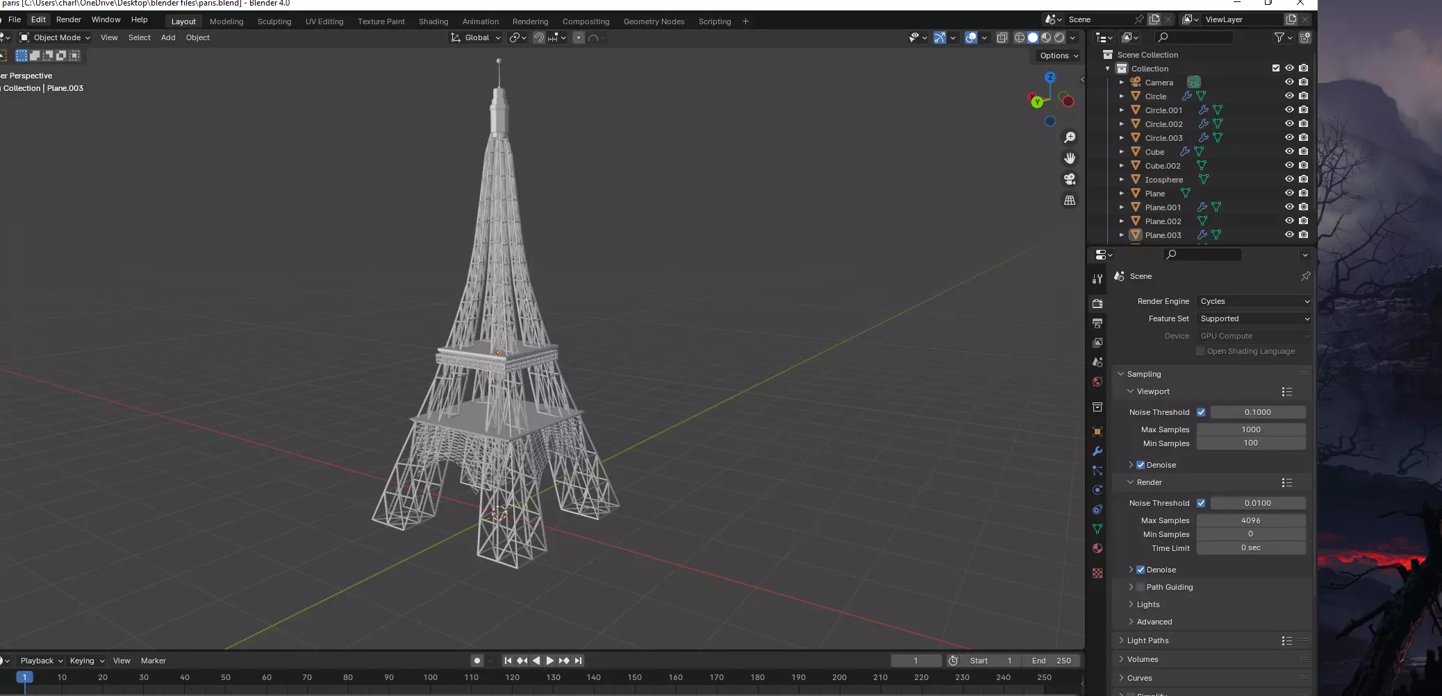 The model has material settings that define how surfaces look (color, shine, transparency, etc.).