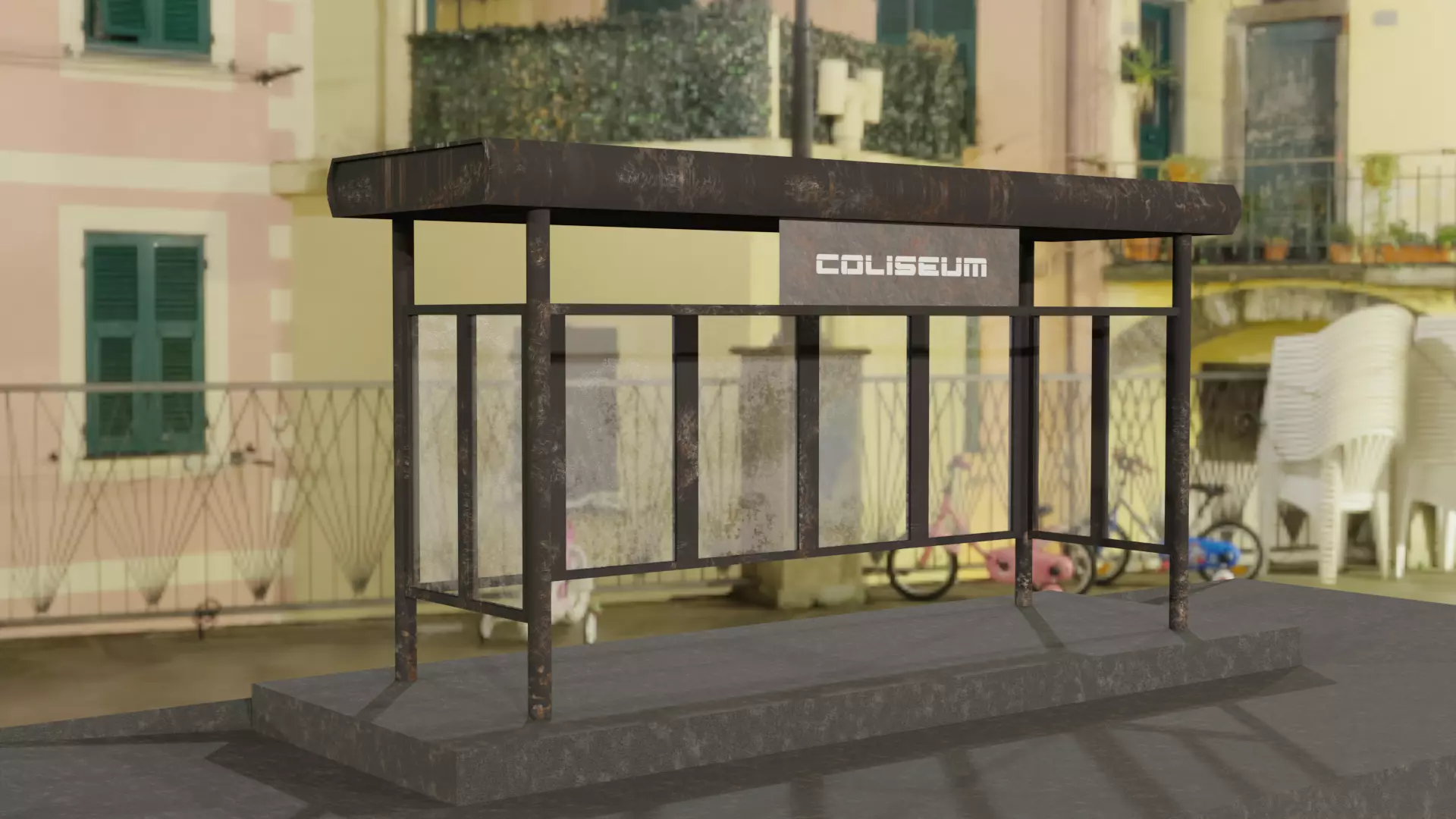 A rusty, minimalist bus stop. The texture set is in a .zip file. Textures in resolution 4096x4096 pixels