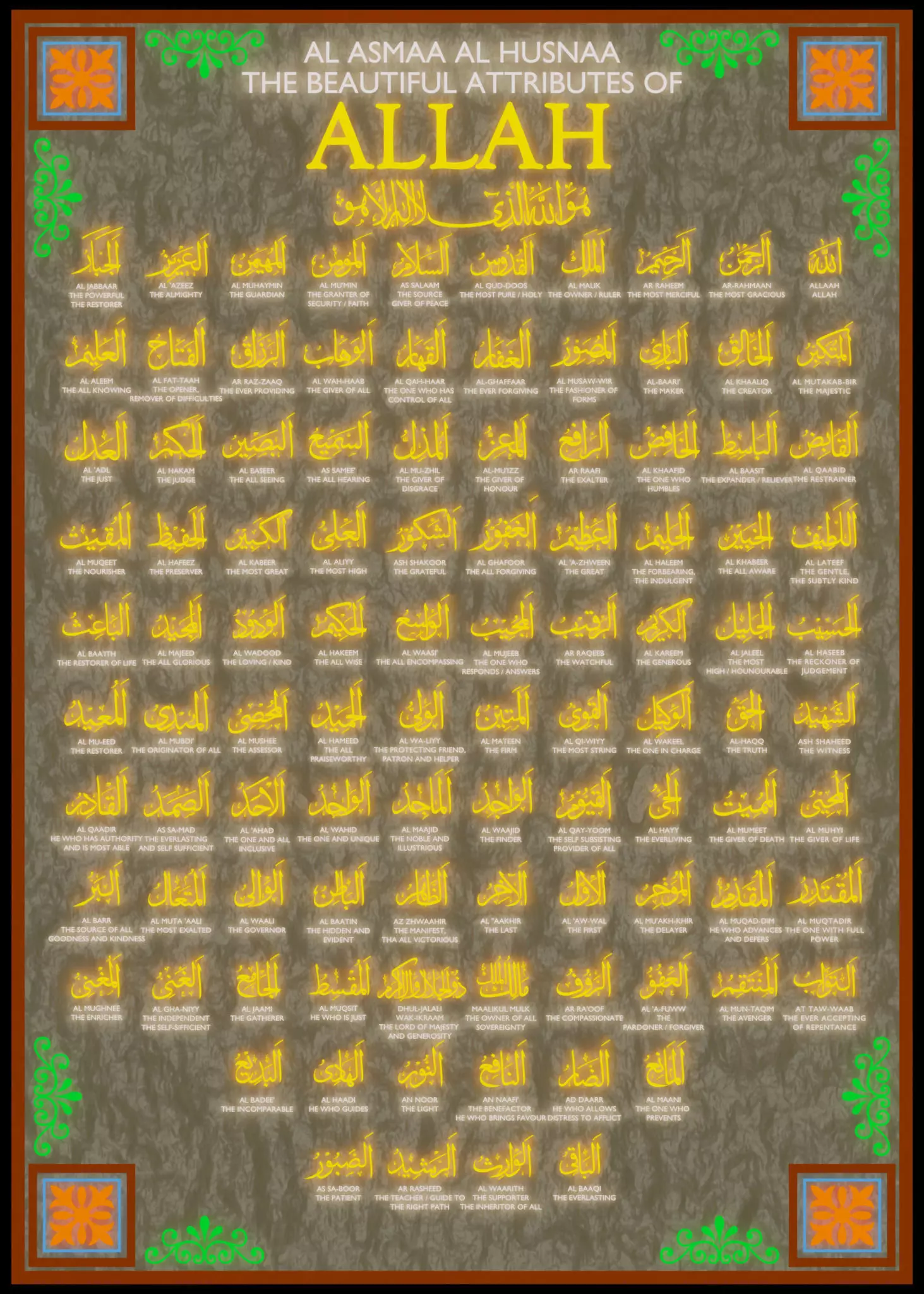 Polygonal Arabic and English words.