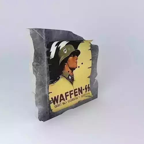 This 3D model was originally created with Sketchup 8 and then converted to all other 3D formats. Native format is .skp 3dsmax scene is 3ds Max 2016 version, rendered with Vray 3.00 Just one of the Many Posters at that time... This one was Posted to ask for Natzi Party Volunteers in War Torn Europe!... This is a Low Poly Model .... only 230 Kbs....