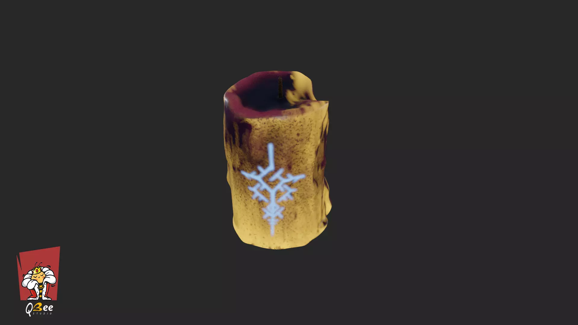 1. Hand-sculpted stylized candle with enchanted rune details