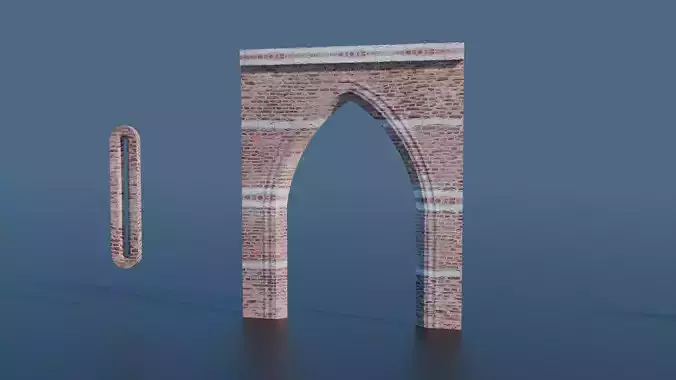 This detailed 3D model set includes a Gothic-style arch gate and an arrow window. Both elements are meticulously designed with realistic brick textures and stone detailing, making them perfect for historical or architectural projects.
