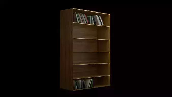 For added versatility, the bookshelf can be customized in terms of its overall size, the number of shelves, and the arrangement of the vertical supports. The model includes realistic detailing, including subtle wood texture, metal brackets (if any), and precise corner finishes, ensuring a lifelike representation.