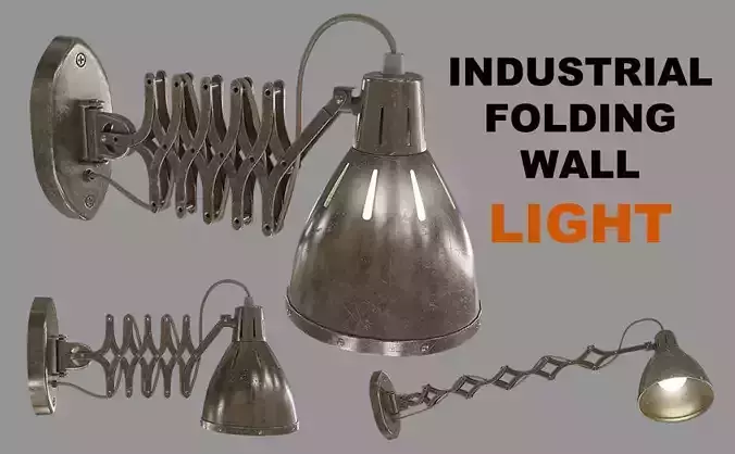 This is a folding wall lamp that has an industrial look and style. As you can see in the pictures, the main model is closed, also there is an example of the model in the open state as an example. But you can open and close the model according to the joints and arms or rotate its head around its axis I made this model in 3D Max and UV mapping it in Unfold3D and rendered in Blender. It also has a 4K PBR textures.