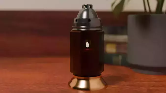 This gothic grave lantern is a beautifully detailed 3D model inspired by old memorial lamps found in historic cemeteries. It features a brass base, a smoked faceted glass mantle that softly diffuses light, and an ornate gray metal top with intricate detailing. The design captures the somber elegance of gothic craftsmanship while maintaining a realistic, grounded appearance. Inside, a single votive candle rests at the center, adding warmth and depth to the scene. Each part of the model—the base and candle—is modeled separately for easy material adjustments and flexible use in different environments. The lantern is ideal for gothic, fantasy, medieval, or architectural visualizations, as well as moody interior or exterior scenes. It combines antique charm with a sense of quiet reverence, making it a striking addition to any collection or render.