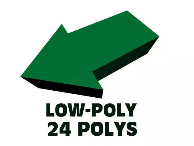 A directional arrow/pointer icon used for pointing at things! Use as a street sign perhaps? Or an instruction in a tutorial part of a game? Or a direction pointer?Very low poly, only 24 polygons.