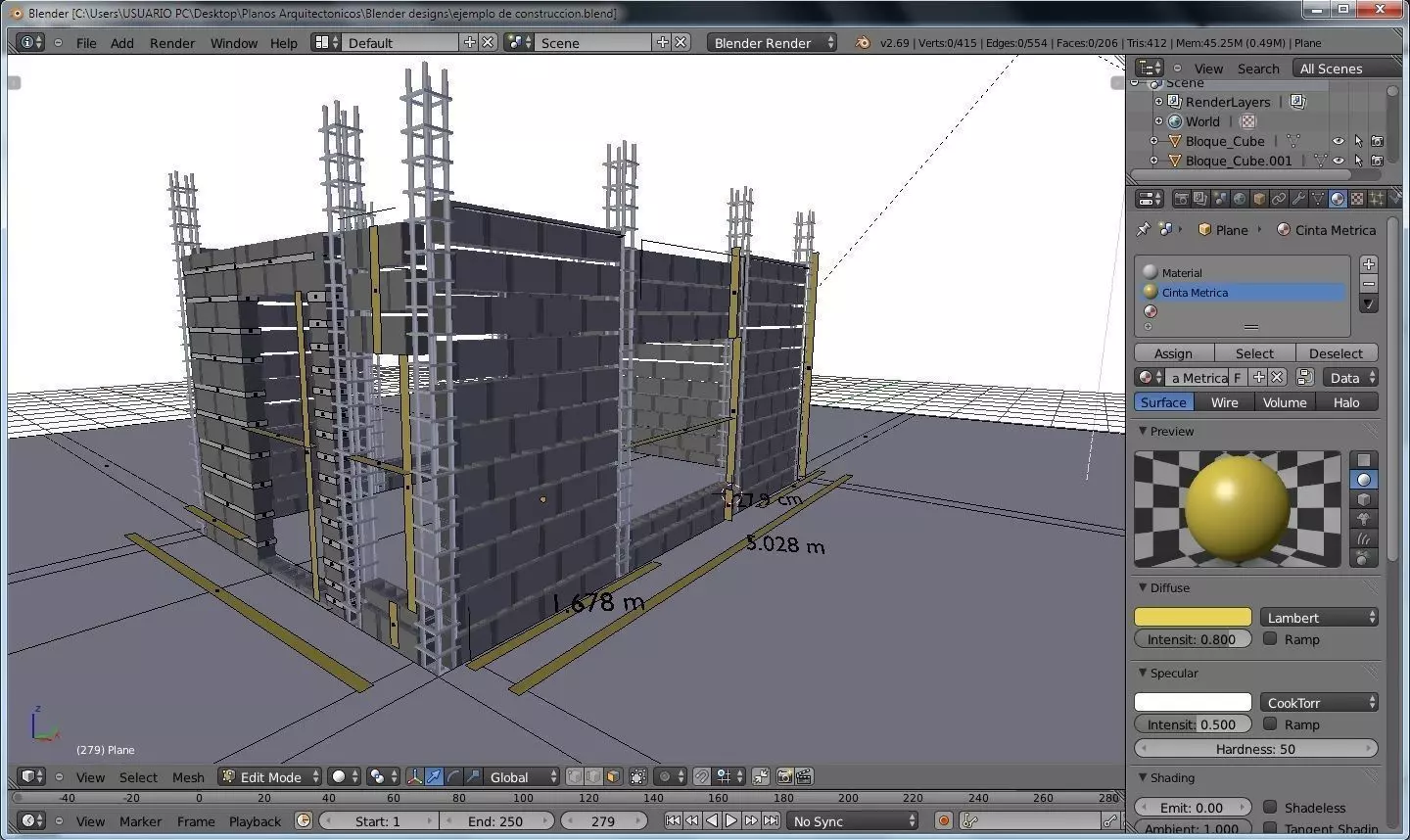 The model has material settings that define how surfaces look (color, shine, transparency, etc.).