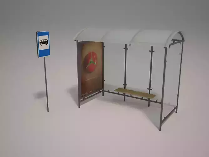 This model can be used for any game, film, personal project, etc. You may not resell or redistribute any contentModel of bus stop standing near my home. I was trying to maintain real life proportions. Used 5 materials (Glass, Dark grey plastic smooth, Dark grey This is a 3D model of lowpoly, a Russian Bus stop.Textures: Diffuse and specular and alphaTexture resolution: 1024x1024 and 512x512Polygons: 824Vertices: 496Including FBX