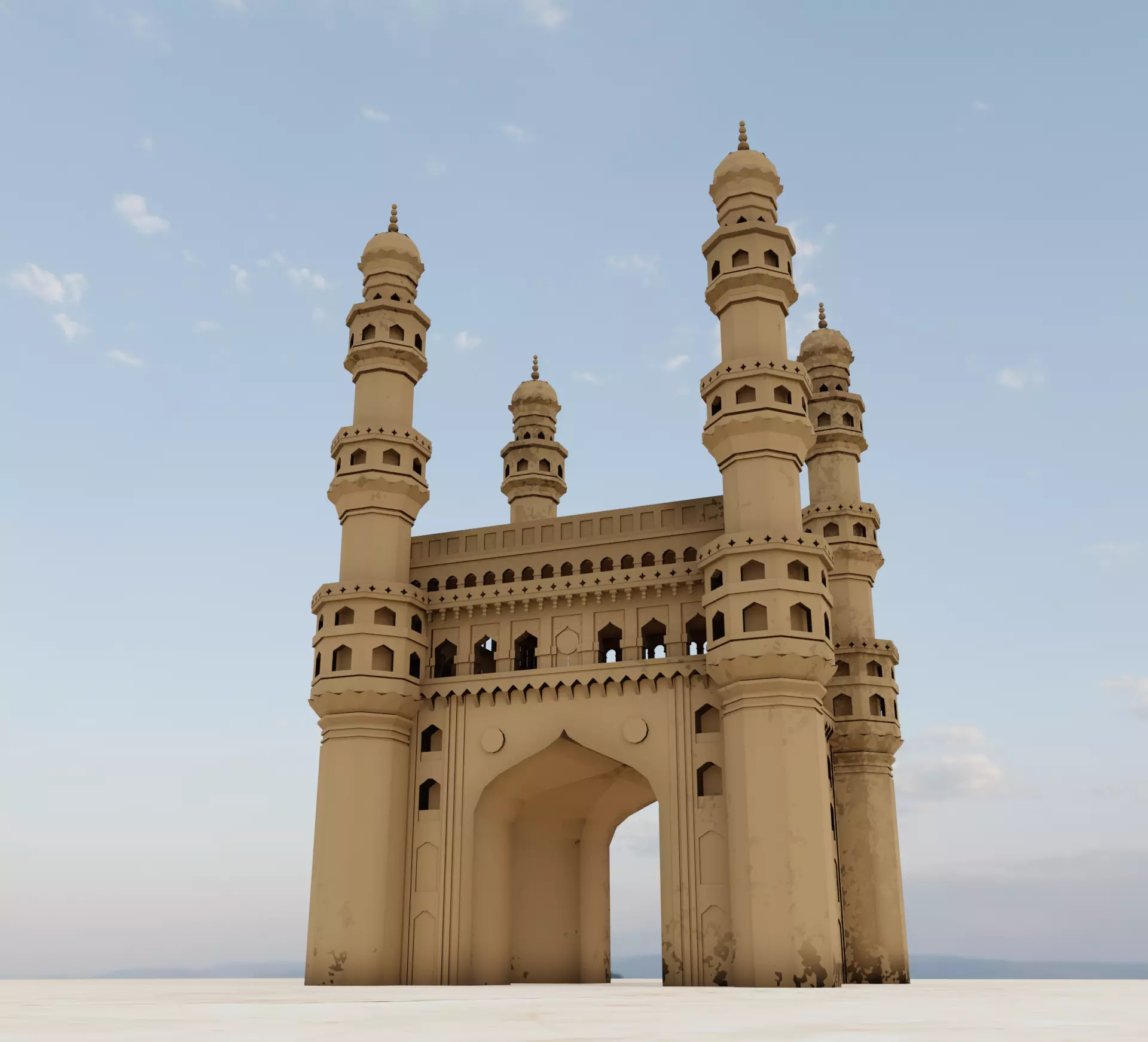 The Charminar (lit. four minarets), constructed in 1591, is a monument and mosque located in Hyderabad, Telangana, India. The landmark has become known globally as a symbol of Hyderabad and is listed among the most recognized structures in India. It has also been officially incorporated as the Emblem of Telangana for the state of Telangana.[3] The Charminar's long history includes the existence of a mosque on its top floor for more than 400 years. While both historically and religiously significant, it is also known for its popular and busy local markets surrounding the structure, and has become one of the most frequented tourist attractions in Hyderabad. Charminar is also a site of numerous festival celebrations, such as Eid-ul-adha and Eid al-Fitr.[4]