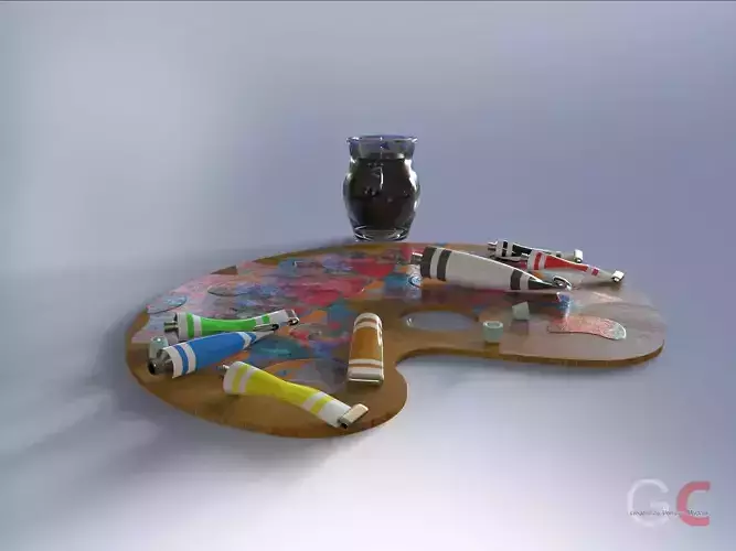 The model has material settings that define how surfaces look (color, shine, transparency, etc.).