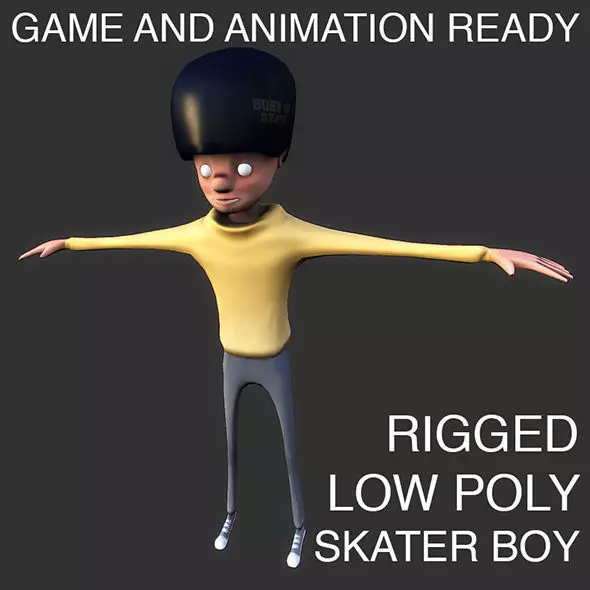 Low poly model of a skater boy, UV unwraped and rigged for games or animations