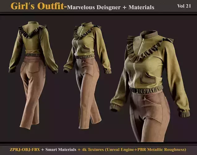 Girl Outfit- MD-Clo3d - OBJ - FBX- Materials-Textures- FREE Free 3D model
