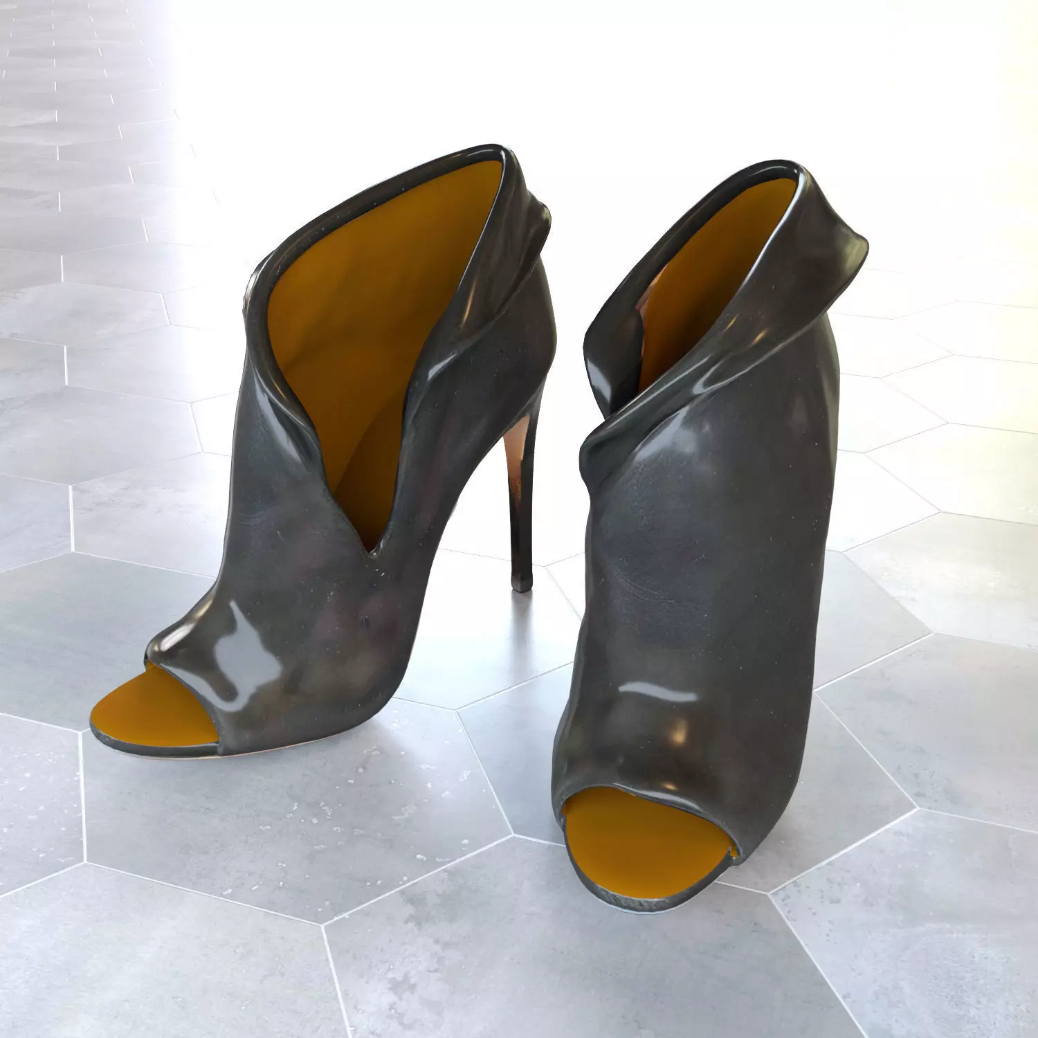 Elevate your 3D fashion projects with this High Heel Ankle Booties 3D Model, a stunning representation of modern, sculptural footwear design. These elegant open-toe booties feature a unique flowing form, combining edgy sophistication with wearable art aesthetics. Perfect for high-fashion visualizations, character design, product renders, and AR/VR applications.
