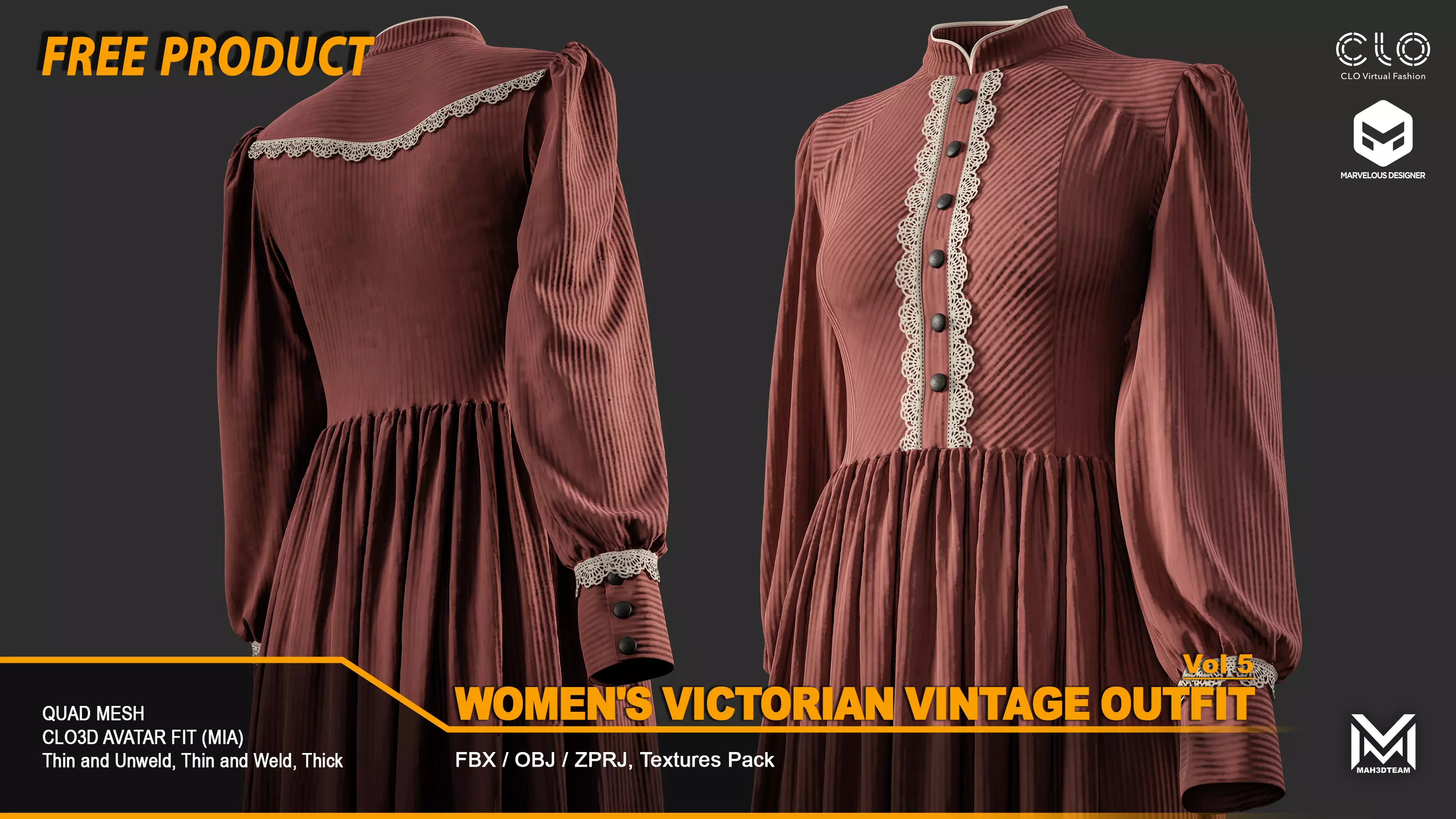 Women's Victorian Vintage Outfit - VOL5 (ZPRJ+FBX+OBJ Files)