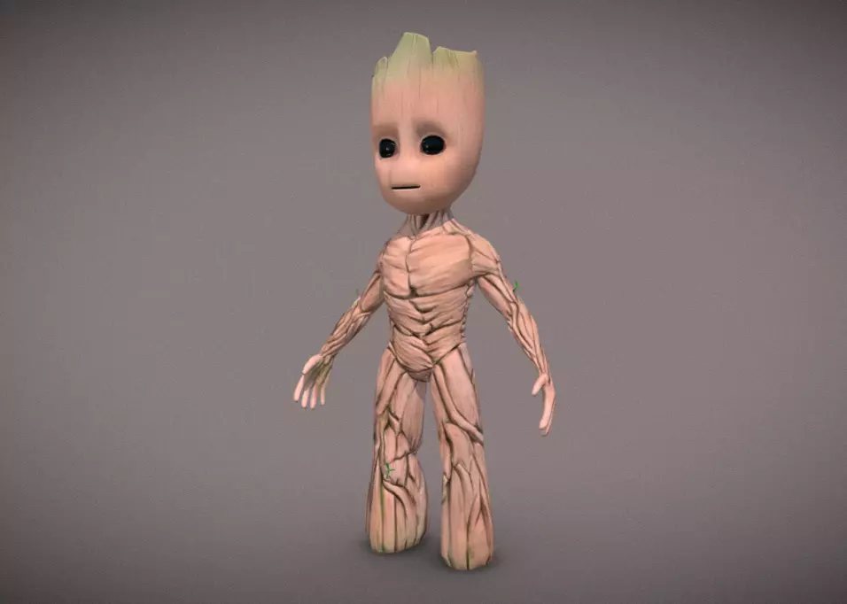 A little model of baby Groot, optimized for games. Includes PBR hand painted textures. It was made entirely with blender.Quads-only model. Around 3k quads. Textures included:albedoroughnessnormal