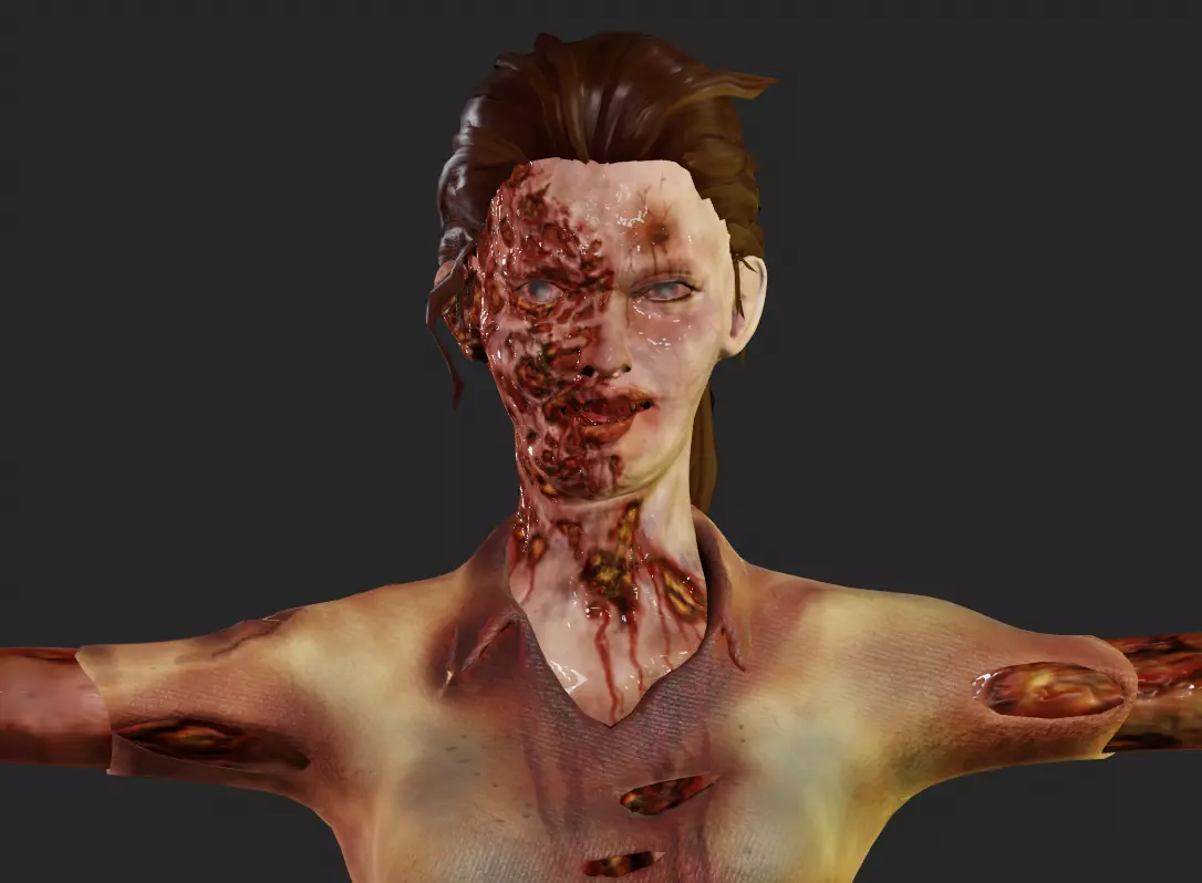The realistic looking with high quality model for your projects. The female zombie had made in blender 2.8 . Inside the buildings looks neat aswell and are empt. Clear wireframe. All in frame are include. The pack has NO ANIMATIONS include. This model are three geometry and 2 texture .