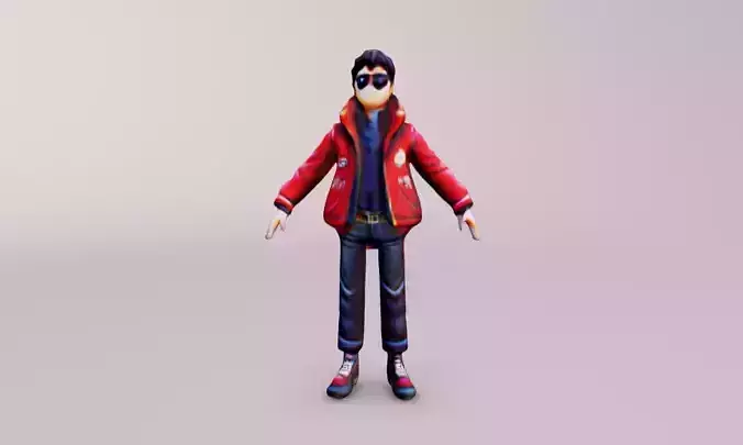 stylized handpainted studio ghibli man Free low-poly 3D model