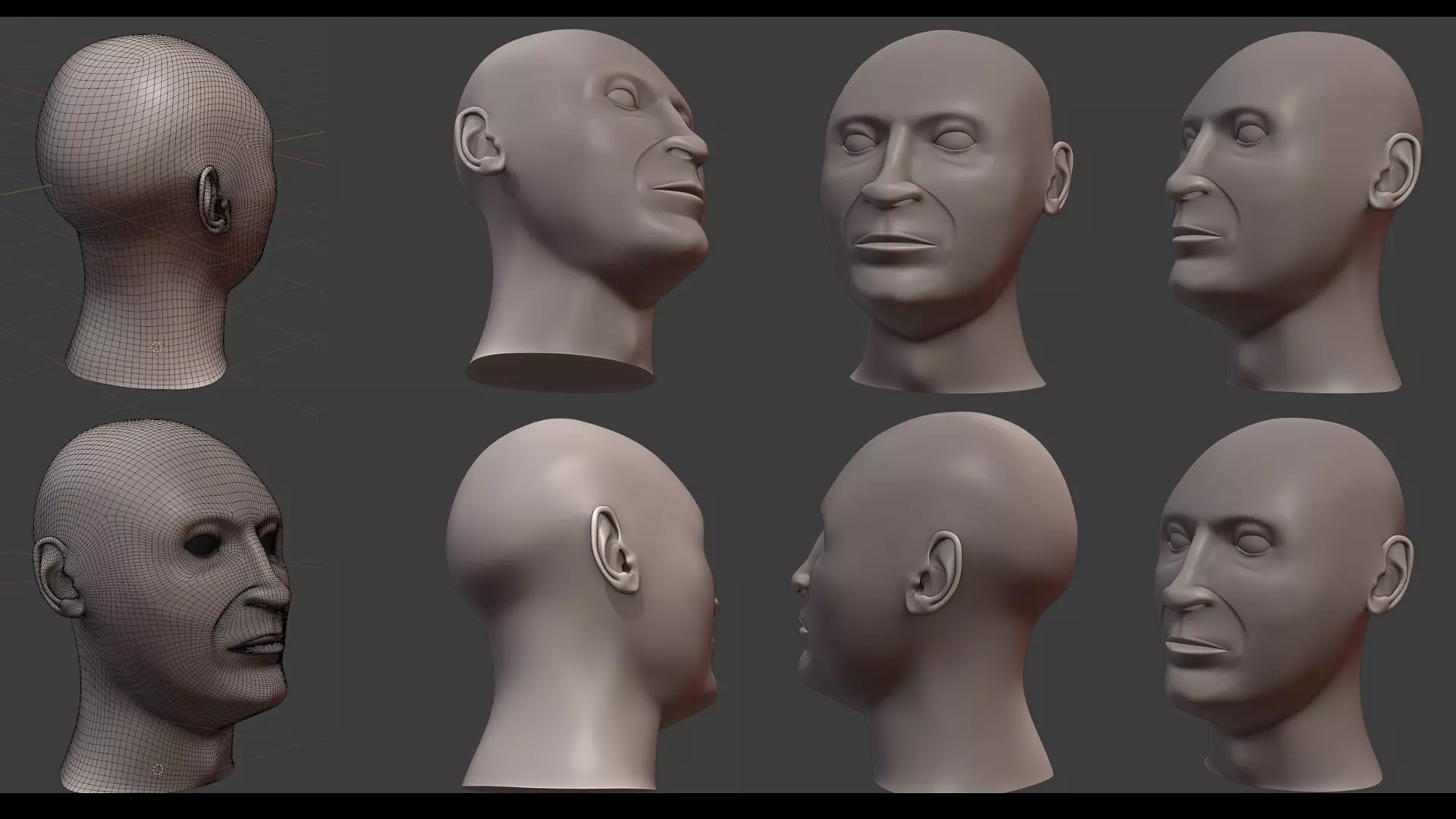 The base mesh of a male head.