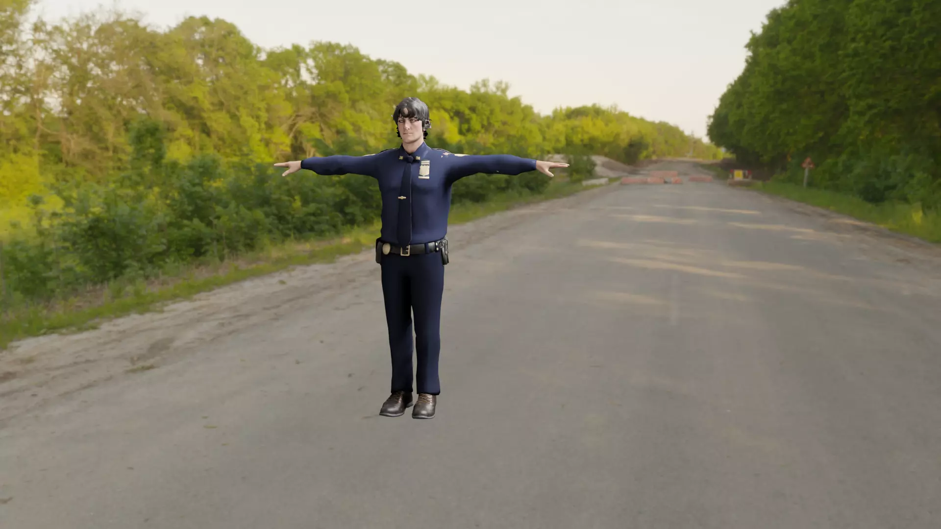 3D police model, with skeleton and applicable animations, compatible with Unity, Unreal Engine and Blender.