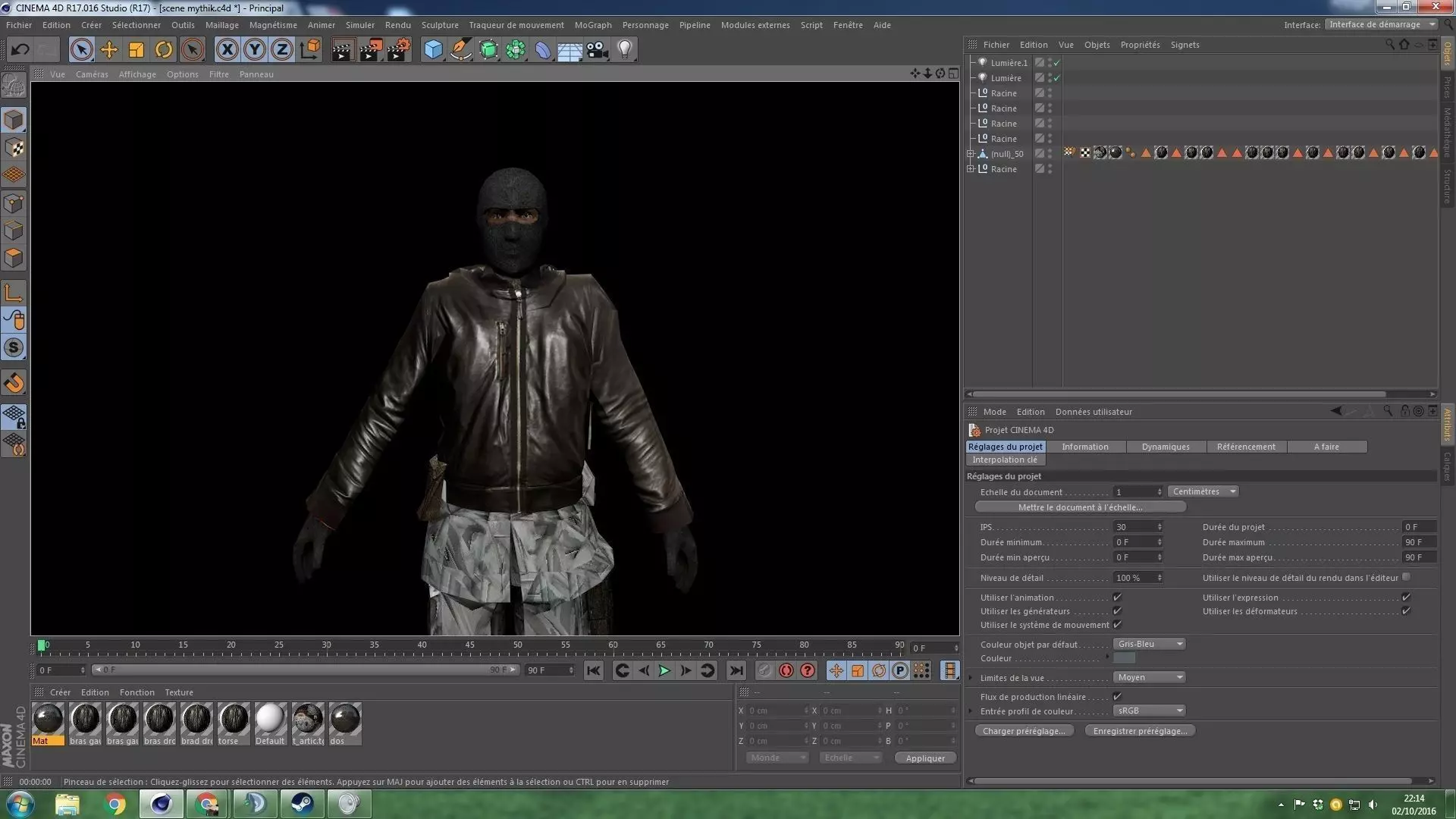 The model has material settings that define how surfaces look (color, shine, transparency, etc.).