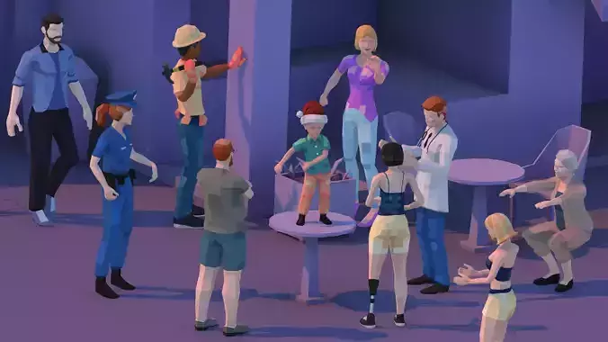 Here you get 10 characters created with 3ds Max 2024. Convenient and efficient Low Poly Art style with different body shapes, faces and outfit variations. Each one is unique and handmade. These are original designs and creations by the author based on its own knowledge and research.
