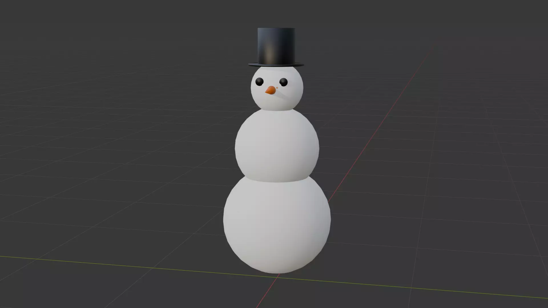 A low resolution 3D snowman. Single-object. Could be used as decoration or as a static character.