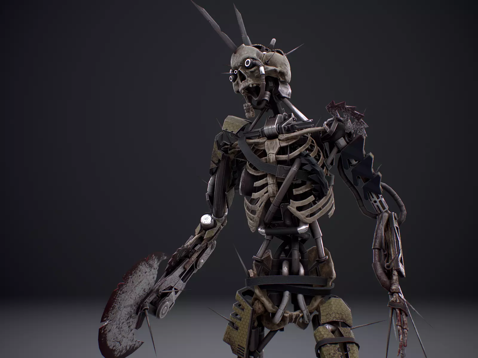 • Model includes 5 materials (skull,skeleton, 2 maerials for mechanism and white emission material for eyes)